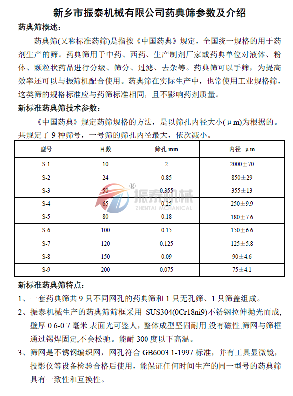 药典筛介绍及1~9号筛框目数与孔径对照表