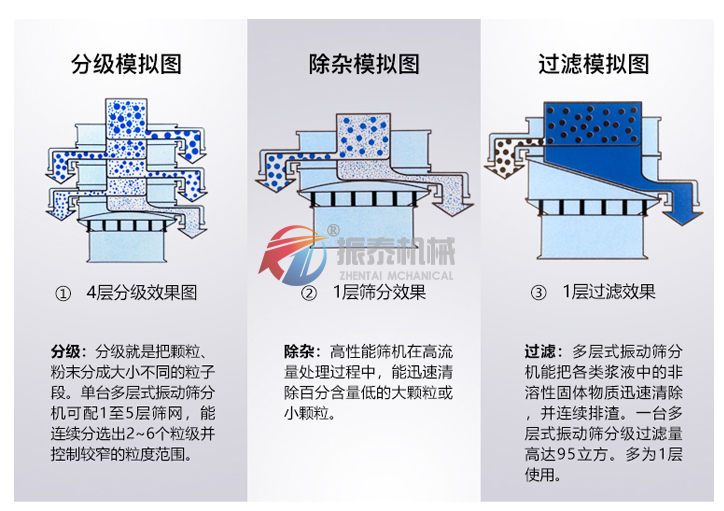 针对粉体使用振动筛一定要做好密封,防止物料污染也可?;げ僮魅嗽痹诜勰┑囱那榭鱿鹿课?,因此防尘盖是粉体必须配备的。该振动筛工作原理通过振动电机两端夹角,利用两端偏心块上的重锤发出的激振力传送至筛面进行筛分。根据使用可调整夹角及偏心块数量改变筛面运行规律。