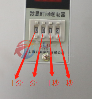 试验筛的时间继电器一共有6组可调节的按钮,从右往左数,右边的两组是指的秒数,左边的两组指的是分钟。例如设定为0300的话代表的是3分钟。而不是300秒。下图的时间应为19秒。0119的话应是1分钟19秒。而不是119秒。