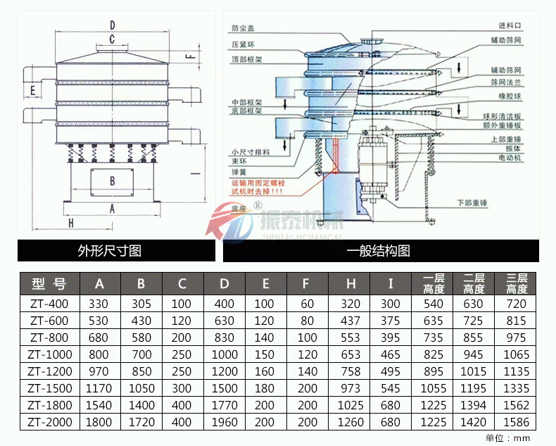 旋振筛技术参数: